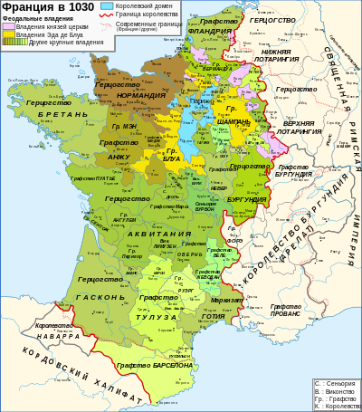 Наследство Алиеноры Аквитанской (Аквитания и Гасконь) на карте Европы в 1030 г. Открытый интернет- источник.