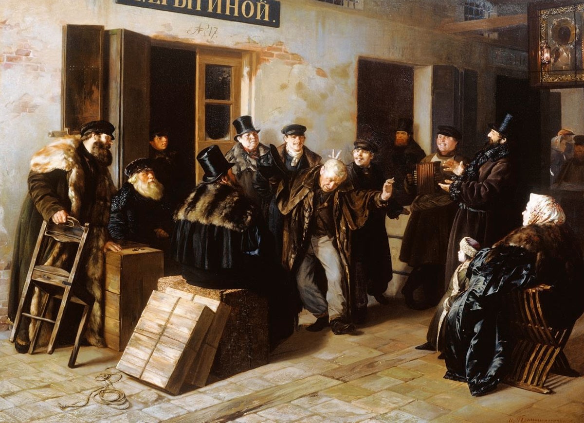 Илларион Прянишников «Шутники. Гостиный двор в Москве» 1865 г.